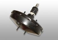Depois do pedal de freio encontramos o servo freio que recebe o movimento do pedal através de uma haste de ligação. O servo freio é um componente que tem o papel de servir, auxiliar ao motorista na força de freio aplicada ao sistema. Por meio de uma mangueira o motor está ligado ao servo freio ou “hidrovácuo”, o motor cria uma sucção de ar no sistema, o servo freio fica com um vácuo interno, em duas câmaras divididas por uma membrana. Quando o motorista aplica força no pedal a haste acaba abrindo passagem do ar em um lado. O outro lado continua ligado ao motor, dessa maneira, a haste que está ligada a membrana acaba sendo empurrada para frente e o servo freio realiza a sua função de auxiliar na força de frenagem.